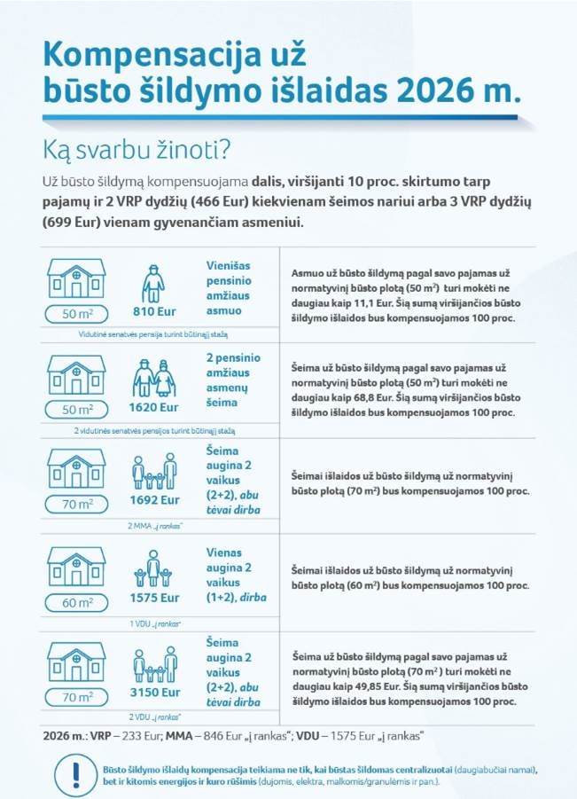 Kompensacija už būsto šildymo išlaidas 2026 m.